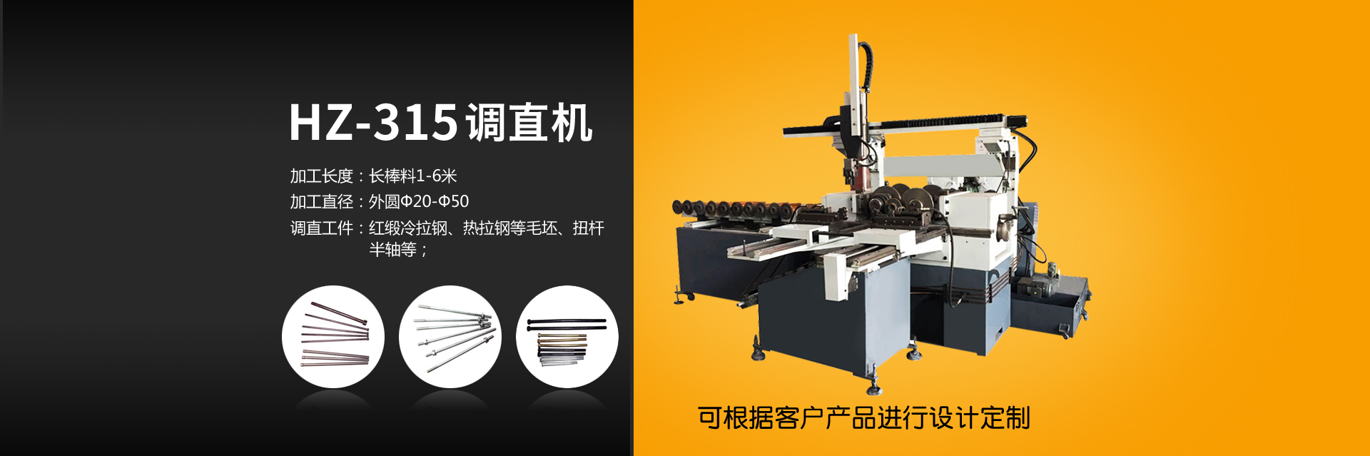 產品廣泛應用于各類機械行業,如標準件、紡織機械、汽摩配機床、電機軸等行業。調直機專門用于各種軸類經淬火后彎曲變形需調直的零件,如汽車、摩托車減震器軸以及其它軸類零件(銅棒、鋁棒、鋼管、螺栓等)。該系列設備能滿足客戶所需要的矯直、送料、接料的要求,矯直后無痕跡。送料機可配套無心磨床、調直機、熱處理設備、自動數控車床、儀表車床使用;可實現自動送料、調直、無心磨、接料,一人多機作業,將多臺設備連接成流水線,為客戶節省大量人力,同時有省時、省料、降低生產成本之特點。也可根據客戶特殊要求定制該系列設備。